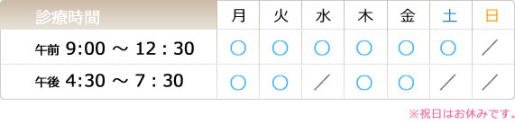 ◆日曜日、祝祭日は休診です。